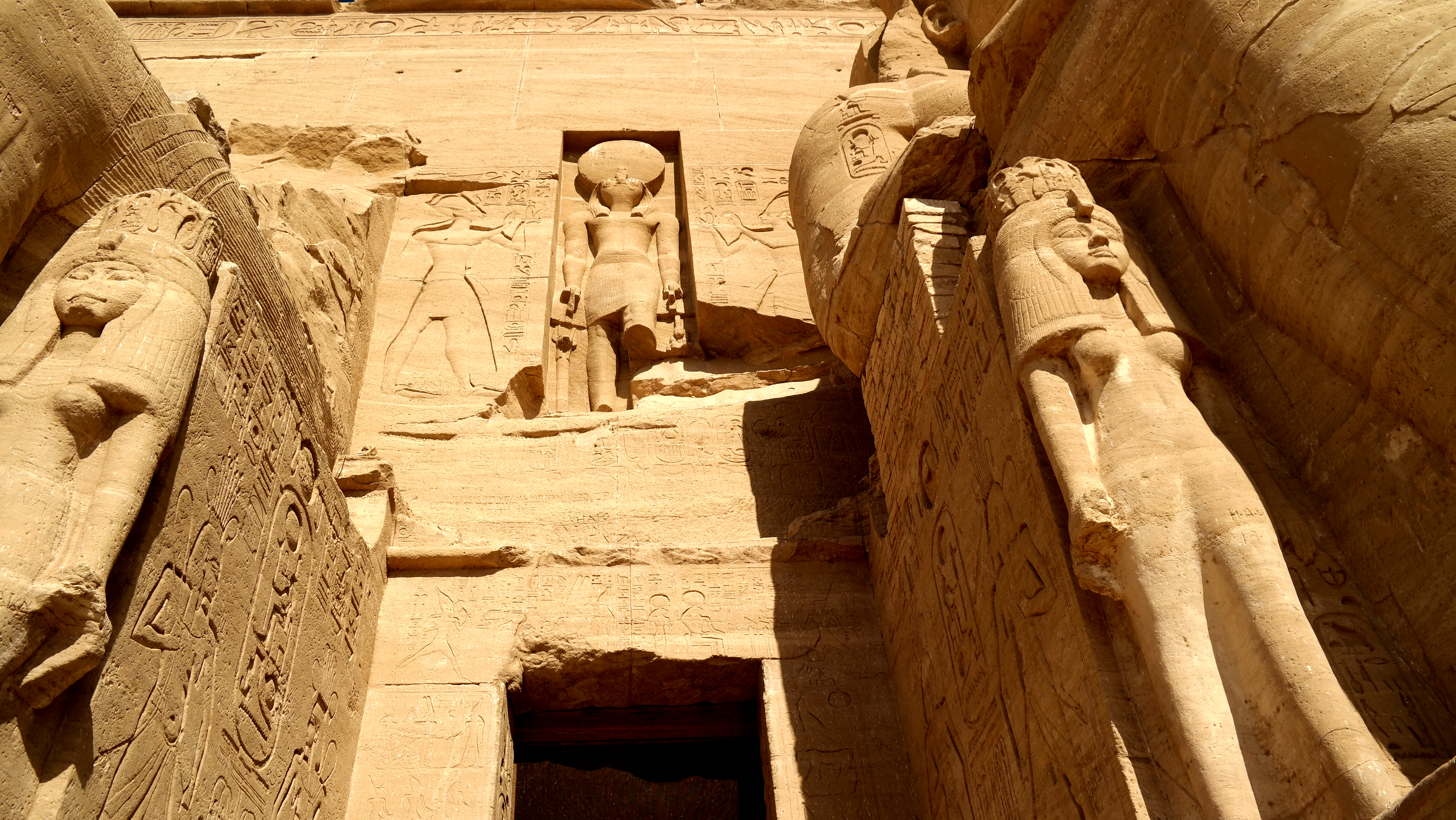 An der Fassade des größeren Felsentempels von